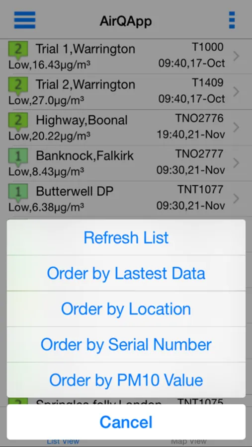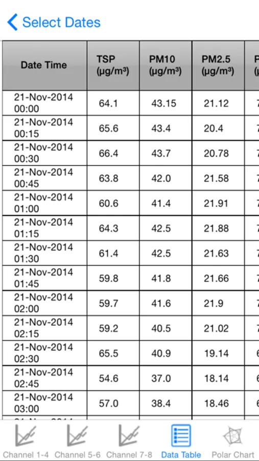 AirQApp is an iPhone application that displays results from environment sensors that collect data on air quality information (TSP, PM10, PM2.5 and PM1) along with any external sensors such as pollutant gases and noise levels. The application collects data from the central database so data can be picked out by dates. This application can plot linear graphs of readings with time and polar graphs against wind direction. Customers who owns the sensors from Turnkey instruments Ltd. can login to visualise the data from their sensors, generate graphs, start/stop sampling, change the configuration of the sensors and generate Excel/PDF reports from the data.
