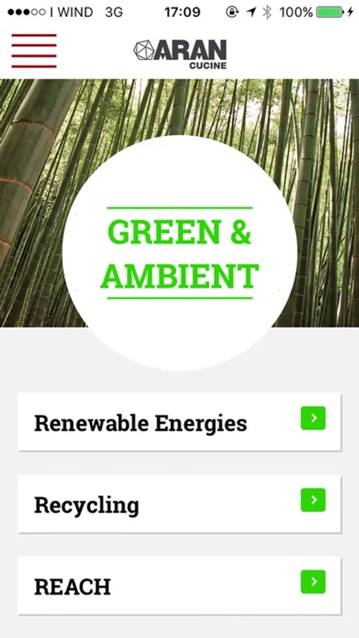 You will be able to discover Aran Cucine models through the on line catalogues and through the green section of the application you can learn and deepen how much commitment the company dedicates since always to recycling and renewable energies and its variuos certification .