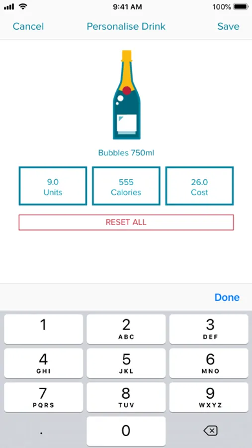 • Keep track of units, calories & cost