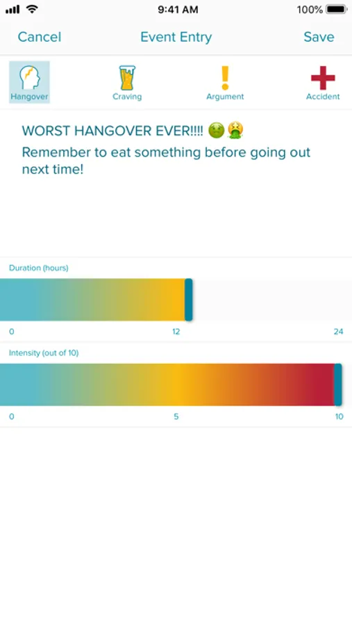 • Track hangovers, arguments, cravings and accidents associated with your drinking via a CBT diary