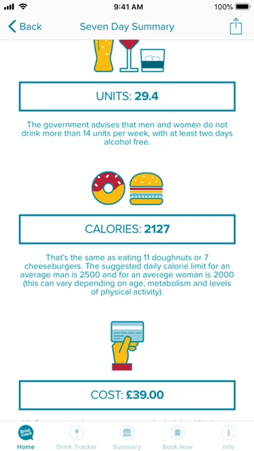 • View & share seven day summaries of your drinking