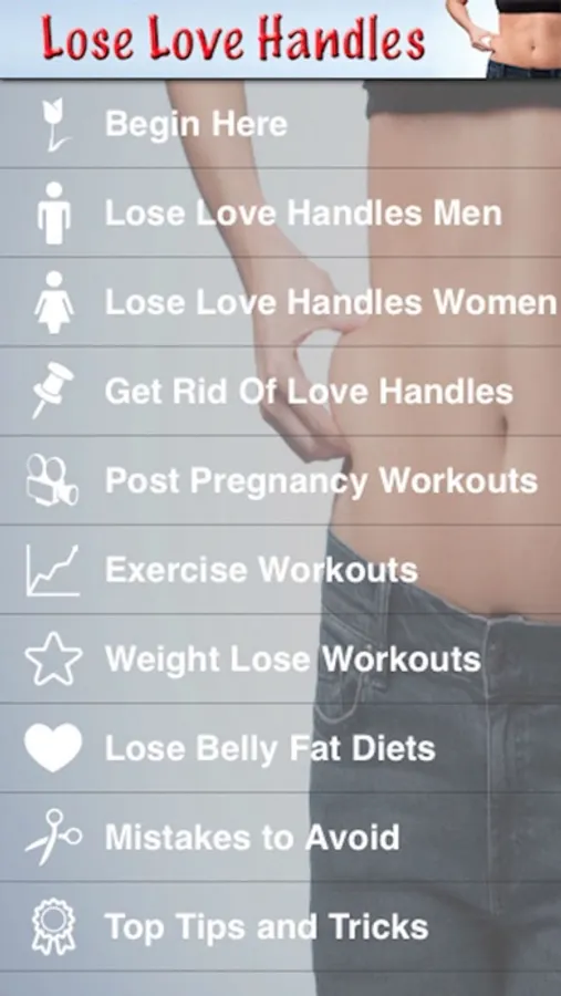 All copyrights are owned by their respected owners. This app is not endorsed by, or affiliated with Lose Love Handles App, or their affiliated entities.