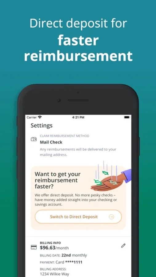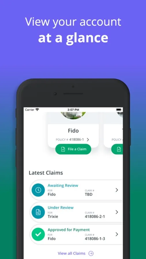 When it comes time to submit a claim, simply take a picture of the invoice and submit it via the app—no paperwork necessary. Most claims are processed within two days, and you can get updates on the status of your claim via the app.