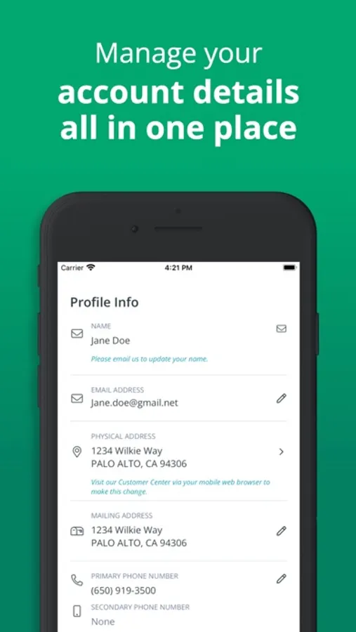 • Update your personal information and billing information