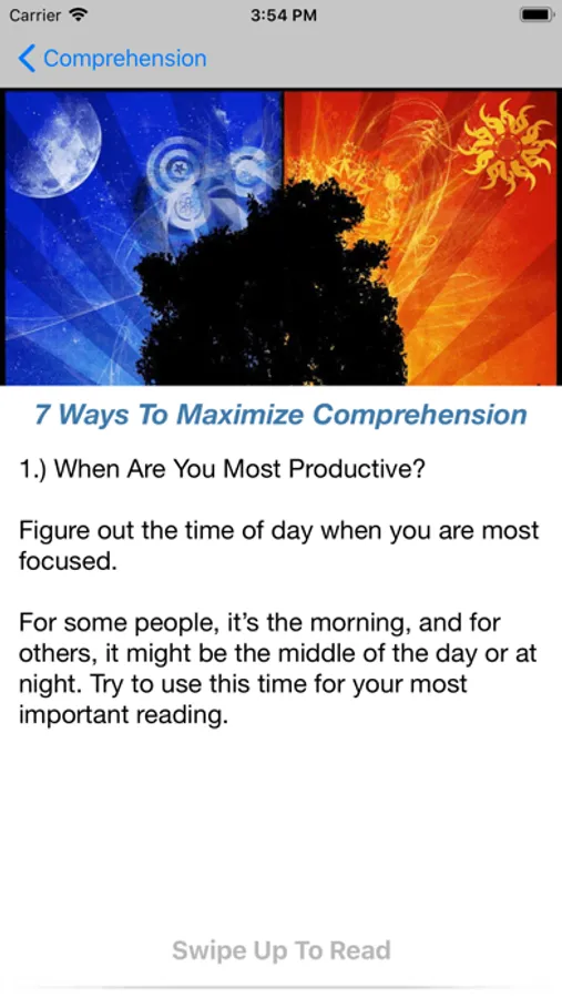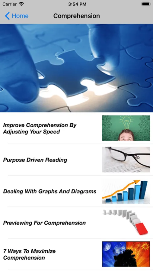 Do you have a lot of reading material but very limited time? Speed Reading Tips provides proven methods and practices that help improve your reading speed, comprehension, and retention. Whether it's reading for fun, reading for school, or reading for your job, Speed Reading Tips is the perfect app to help you become a more efficient reader.