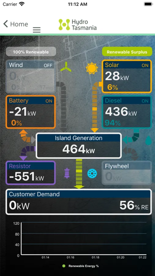 Monitor your home energy usage remotely. This app is primarily targeted to selected participants of the King Island Smart Grid. Participants are able to login using previously provided log-in details to view their energy use data over various timescales. Other users can take advantage of this app by viewing in real-time the renewable energy contribution to the world leading King Island Advanced Hybrid Power System. This world leading off-grid system was developed through the King Island Renewable Energy Integration Project (KIREIP).