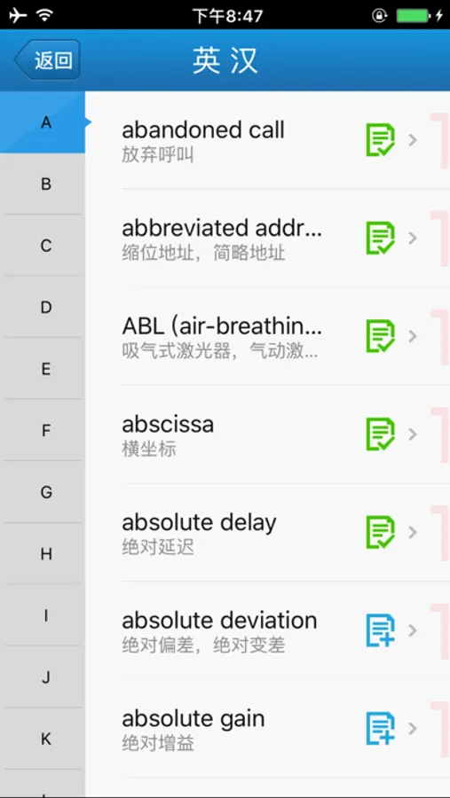 外教社官方权威正版发布,其他同名电子、通信与自动控制技术词汇手册均为盗版。《外教社英汉汉英电子、通信与自动控制技术词汇手册》是由上海外语教育出版社发行的词汇词典类软件,软件收录了电子、通信与自动控制技术基本词汇(英汉、汉英双向收词18000余条),是电子、通信与自动控制技术专业必备手册。本软件由海笛科技提供产品支持,具备手机上最便捷的查词功能(摄像头查词、语音查词等),还有清晰发音、生词收藏、生词辅助记忆等学习功能。选择高品质词典和词汇手册,学习更有保障!