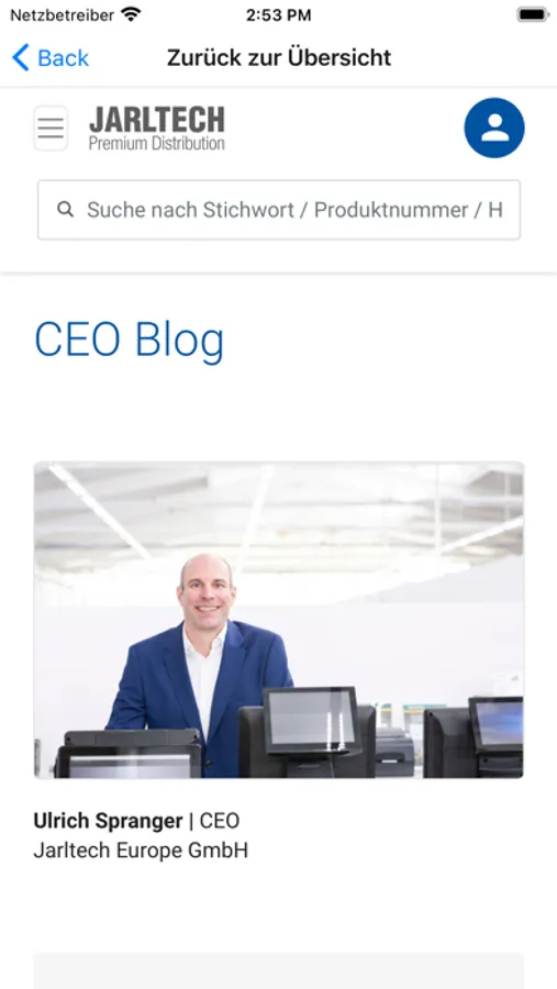 Access to the latest product announcements and special offers, as well as the CEO blog, is just as easy – simply select them from the home screen. In short: you have many of the functions of the Jarltech website and the online shop in a compact form, optimized for mobility.