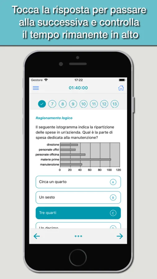 This app is built on a database of 1000 questions with their corresponding annotated solutions, and enables you to generate an unlimited number of different tests and reach a better preparation. After downloading the app, you can simulate a full test of 60 questions, similar to the actual official test, or you can choose to check your preparation in a quicker way by completing short tests with 20 questions, in order to optimize your time. In both cases, you can pause the test and resume it later, you can submit it and check the solutions, or you can abandon it and start a new test.