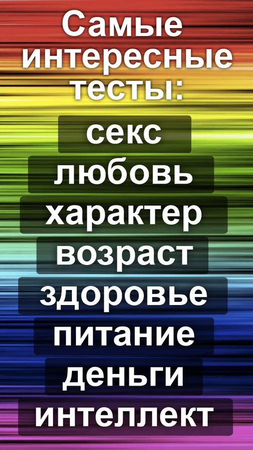 Выбирайте те тесты, которые вам интересней, или пройдите все, чтобы узнать себя лучше!