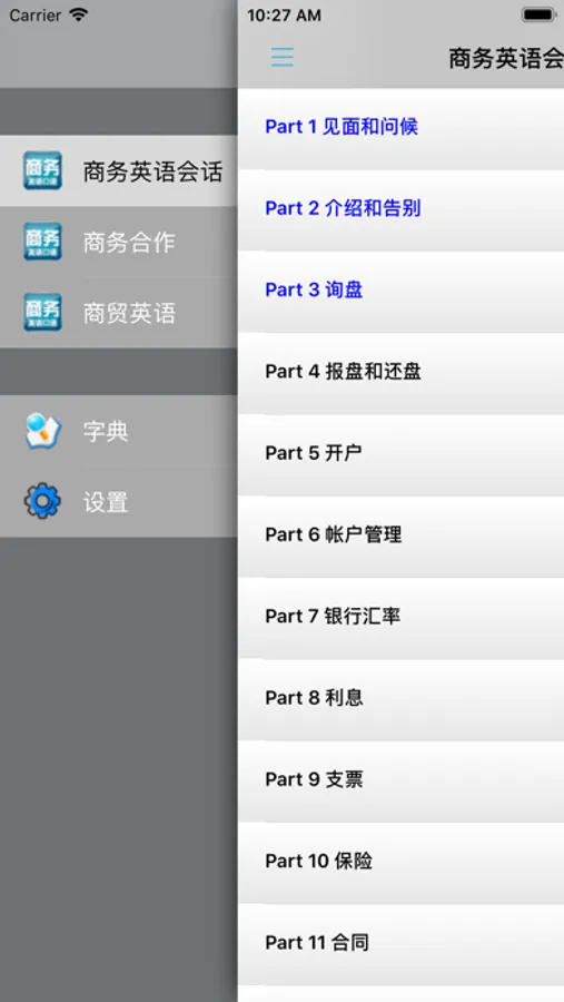 内容包括日常工作、职场交谈、工作情绪、业务关系、商定价格、付款、交货、包装运输、保险索赔、销售营销、国外出差、订机票、旅店、处理突发事件等最常用的商务术语与词汇以及贸易实务常识、欧美国情、基本礼仪,让学员成为博闻多礼,潜力无限的经理人才。