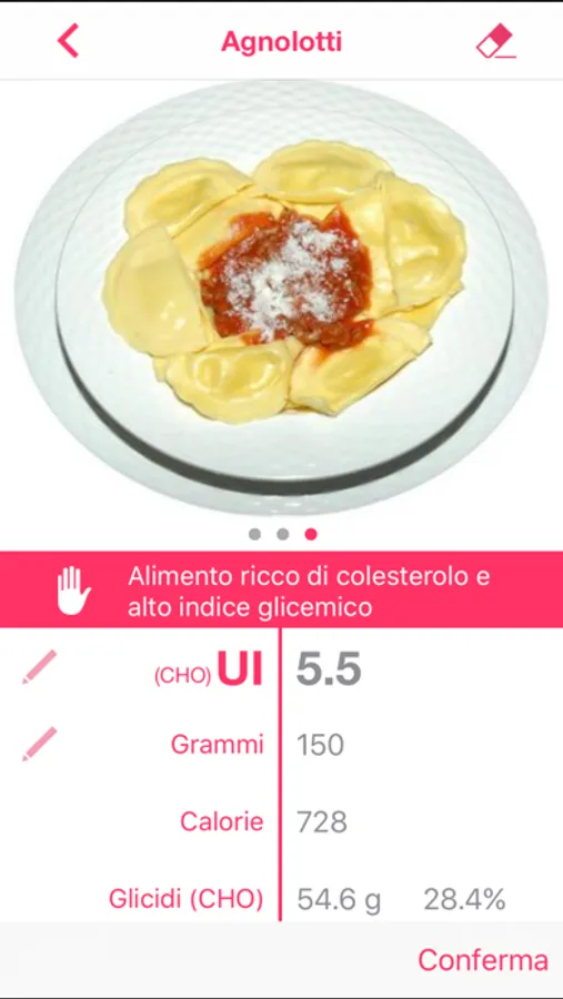 In questo modo, accanto alla foto quantizzata dell'alimento, compaiono le unità insuliniche equivalenti per il soggetto.