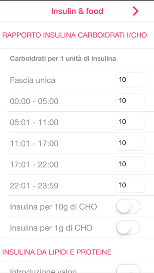 Le insuline introdotte dal diabetico possono essere correlate ai CHO da iniettare prima del pasto e/o a quelle derivate dai lipidi e proteine da iniettare dopo o durante il pasto stesso, secondo le indicazioni del medico.