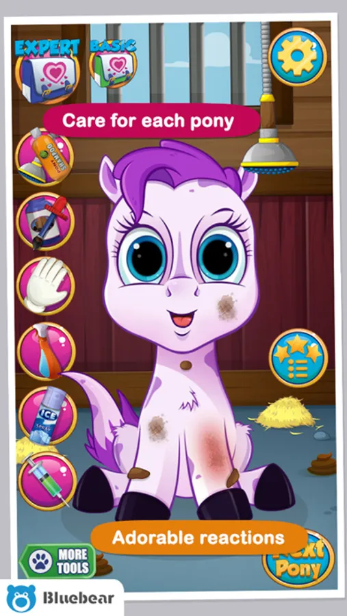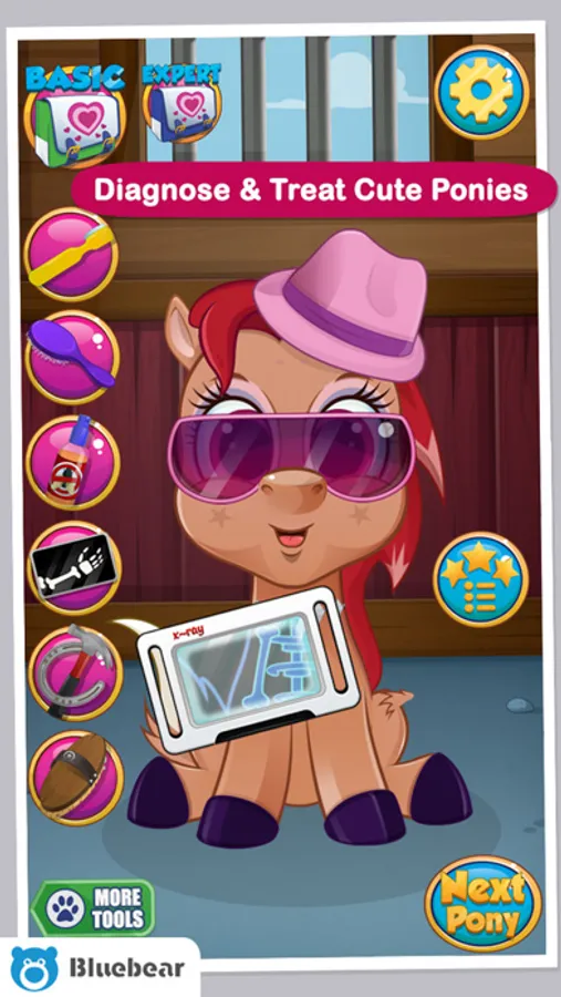 Each pony has specific injuries that need attending to straightaway. Use depicted real life veterinary tools to diagnose whats wrong with each cute baby pony.