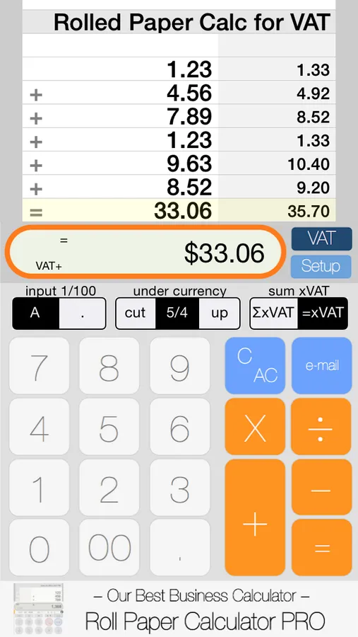 This Calculator shows Tax added value automatically by simply entering a pre-tax price in the "Rolled paper calculator". Tax added amount is also displayed in total price.