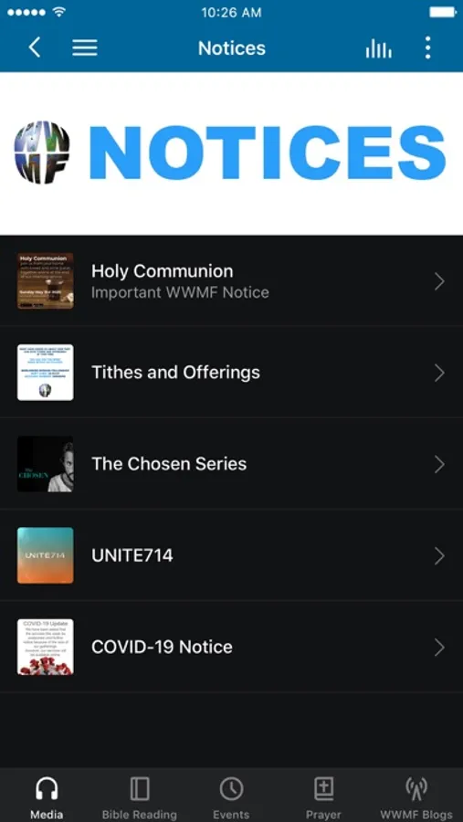 The Worldwide Mission Fellowship App was created with the Subsplash App Platform.