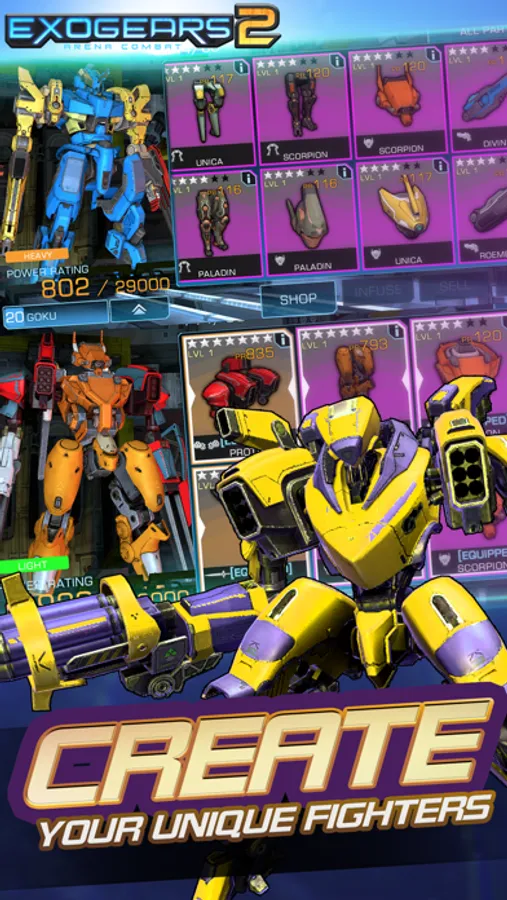 - Customize your ExoGear with HUNDREDS of parts and upgrades