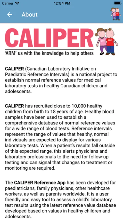 The CALIPER App has been developed for paediatricians, family physicians, other healthcare workers, as well as parents worldwide. It is a user friendly and easy tool to assess a child’s laboratory test results using the latest reference value database developed based on values in healthy children and adolescents.
