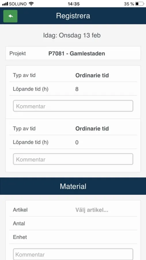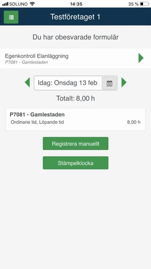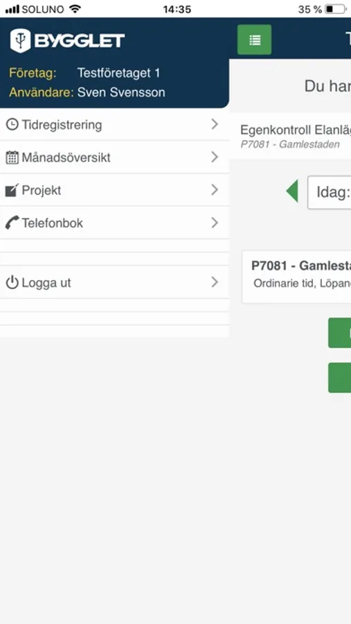 I appen hanterar du smidigt bla Tidrapportering, Personalliggare och Egenkontroller.