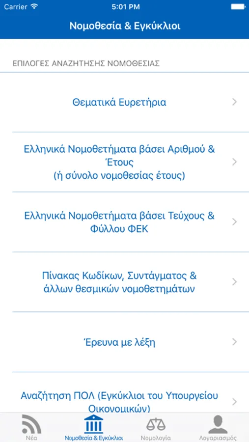 - Επιλογής Θεματικά Ευρετήρια Νομοθεσίας