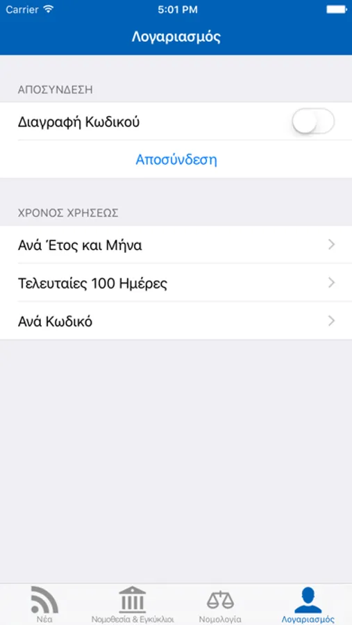 Η εφαρμογή της NOMOS για iOS περιβάλλον σαν προσφέρει τις παρακάτω χρήσιμες λειτουργίες: