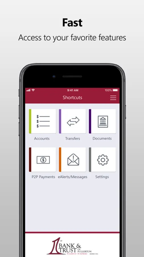 With the 1st Bank & Trust of Fullerton Mobile app, you can view your account balances, transfer money between your accounts, and even pay your bills from anywhere!