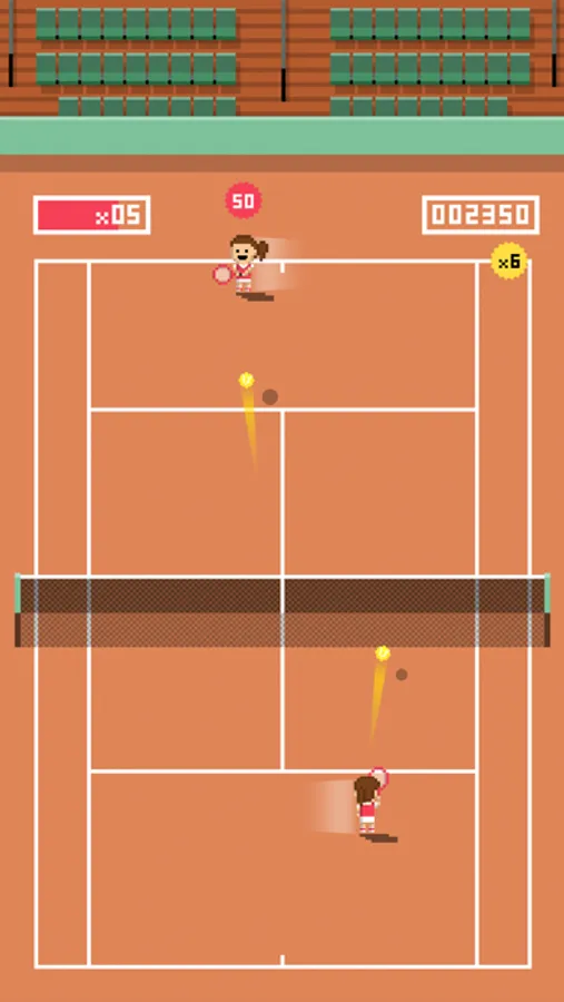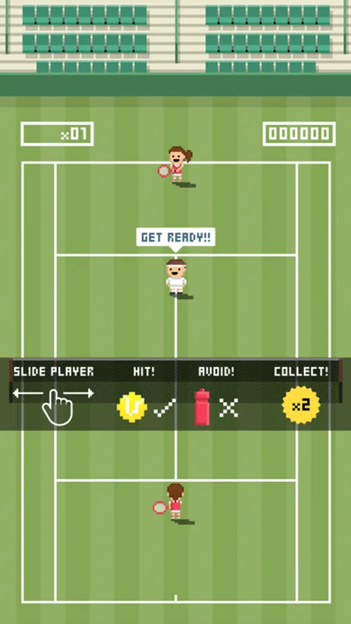 Move your player to hit oncoming tennis balls and avoid flying water bottles.