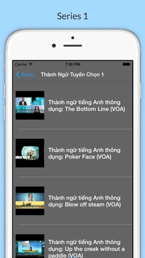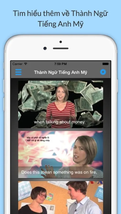***Ứng dụng Thành Ngữ Tiếng Anh Mỹ Thông Dụng mang đến cho quí vị và các bạn những câu thành ngữ Tiếng Anh Mỹ được sử dụng rộng rãi hàng ngày với thiết kế dưới dạng các video bài học ngắn khoảng chừng 1 phút trở lại, cùng các bộ từ điển Anh Việt, Anh Anh tiện dụng.