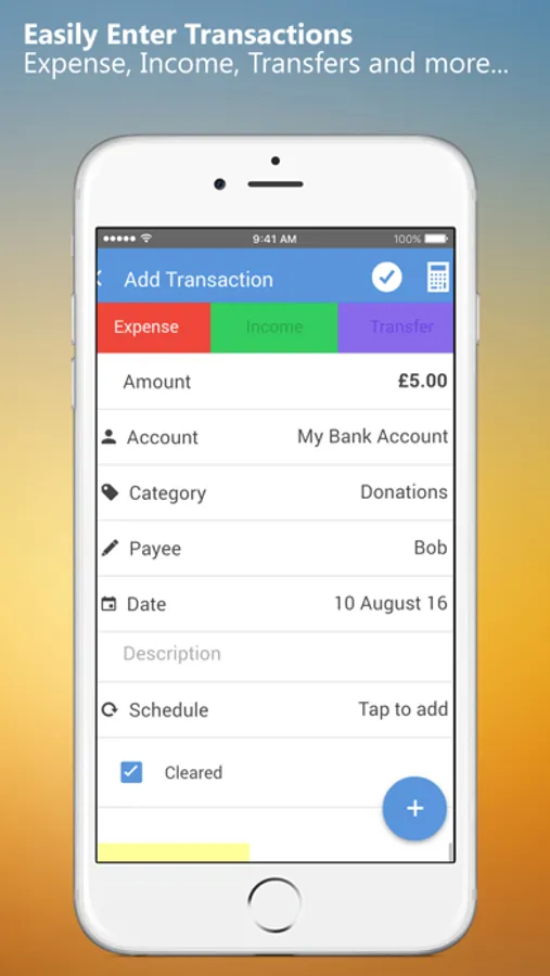 Easy to manage budgets for all expenses or specific category for a week, month or even year. See when you reach a limit on a budget.