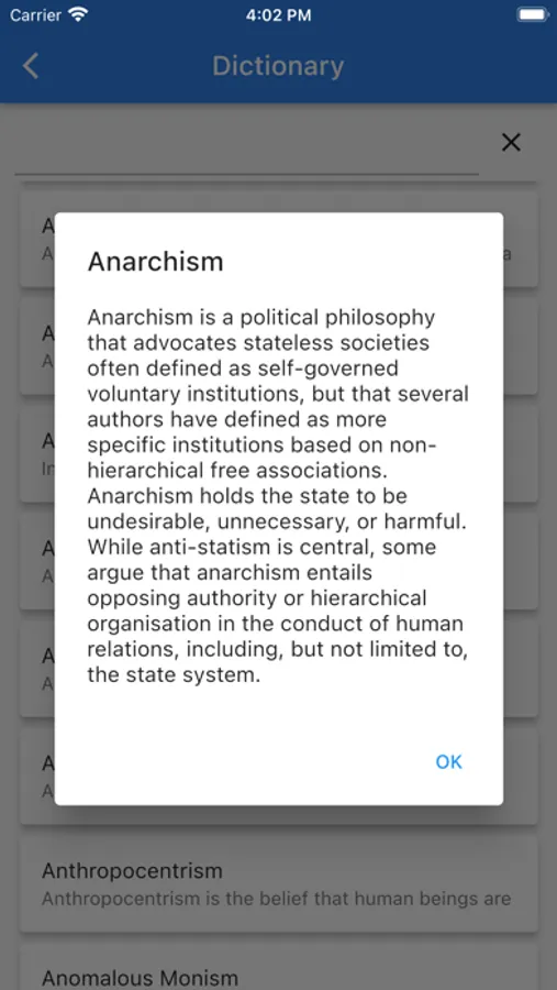 - 398 Philosophies and Ideologies with associated flashcards and quizzes. An in app search bar helps you navigate straight to the term you are looking for.