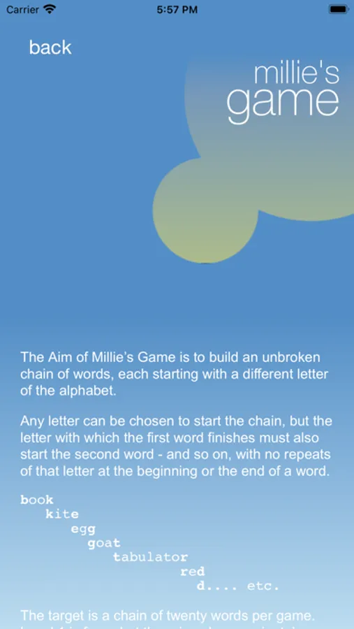 - Millie's Game is a word game designed to foster spelling skill and nurture an interest in words.