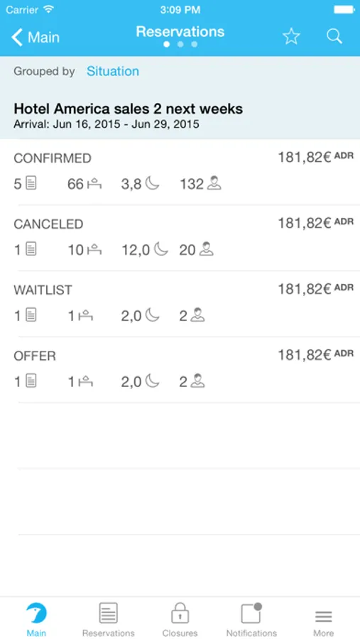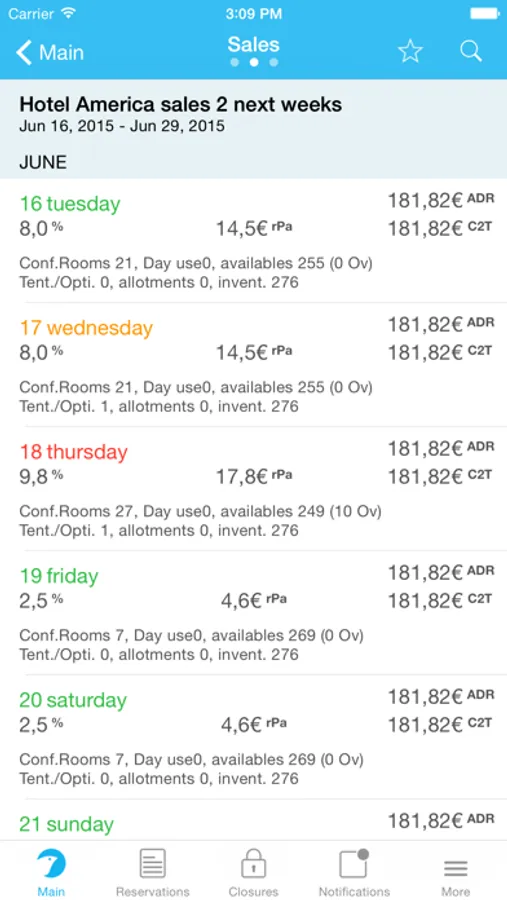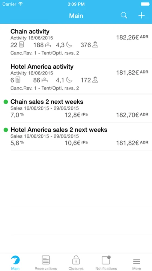 - Subscribe and receive notifications of the closures, availability, alerts when a difference occurs in your expected average price or revPar, also when your occupancy is higher than your defined thresholds, etc.