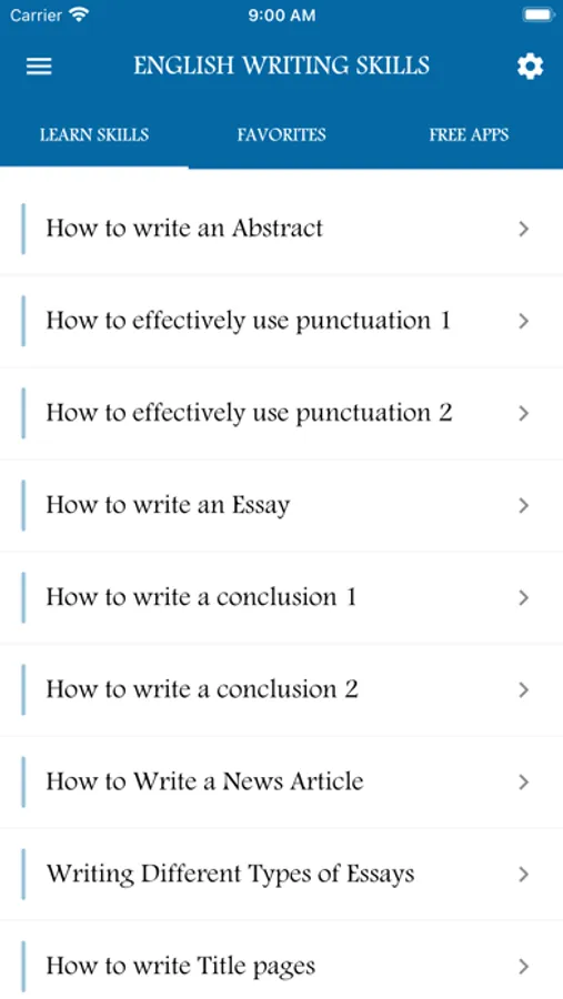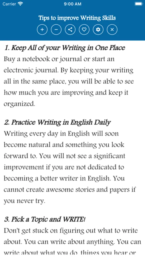 This app helps you to improve your writing skills.This app will explain how you can can be effective and perfect in writing the following