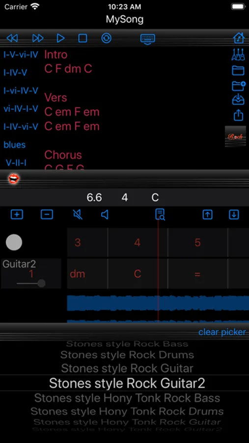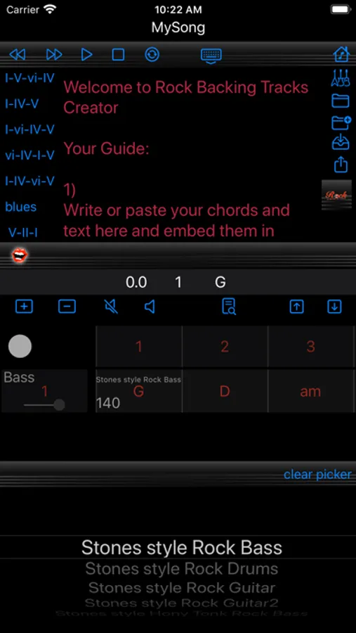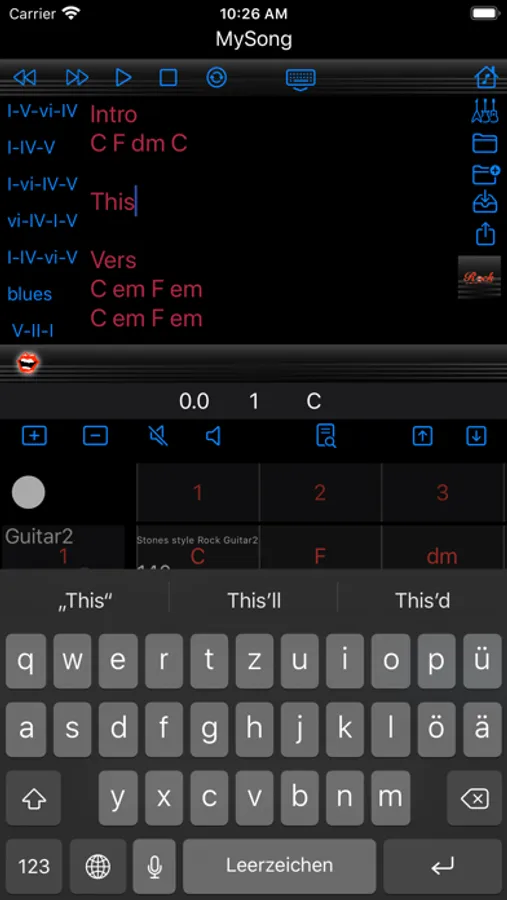 Paste, write down your rock chords (or whole lead sheets with your text) easily or tap a button for popular chord progressions and let them play by professionell musicians.