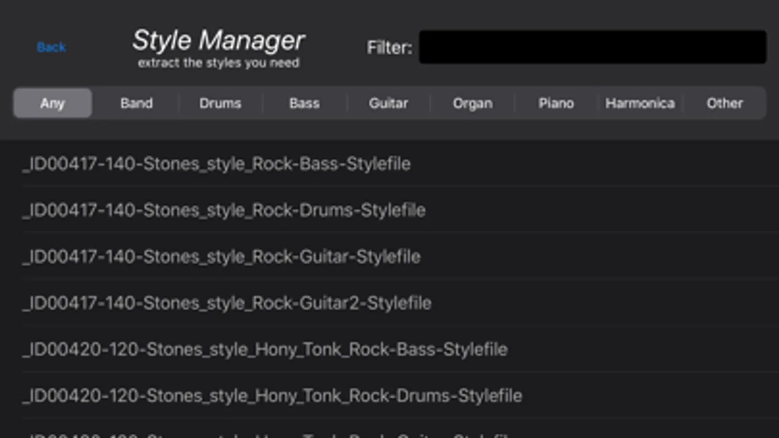 You got no idea for a song or chords to play? Create a new track with the tap of your fingers. Download a rock style and your ready. Download single instruments or complete bands to create your song.