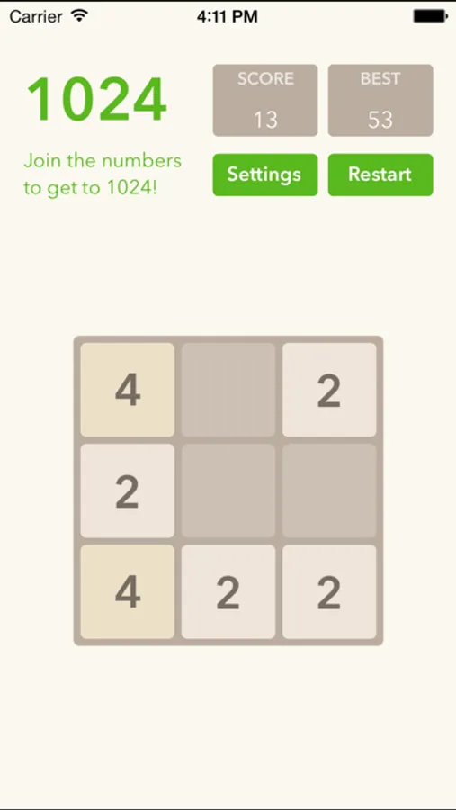 The 2048 game based on the web-based game by Gabriele Cirulli. In addition to being the most smooth version for iOS, this game has the following additions (hence the More!):