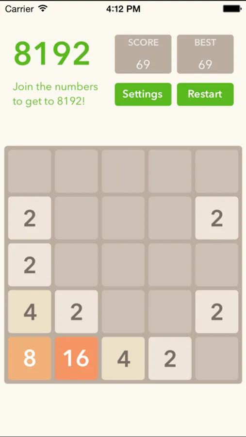- Choices of power of 2 (original 2048), power of 3 and Fibonacci numbers. All three have different merging criteria, so this is 3 games in 1!