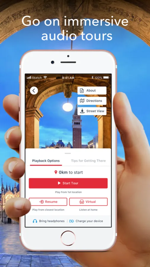 • Explore at your own pace. Start and stop tours whenever you like, then use the resume option to pick up exactly where you left off.