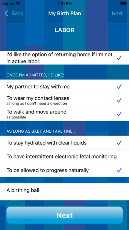 2. Create your ideal birth environment and experience using My Birth Plan guide. You can outline your preferences in terms of birth attendants, amenities, pain management, labor tools, etc., and then share your plan (via email or text) with your partner, coach, doctor and/or medical provider.