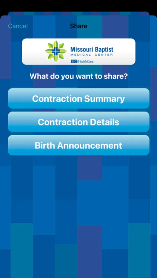 1. Record the beginning and end of each contraction. The app creates a contraction summary – including date, time and duration of your contractions – to share (via email or text) with your partner, coach, doctor and/or medical provider.