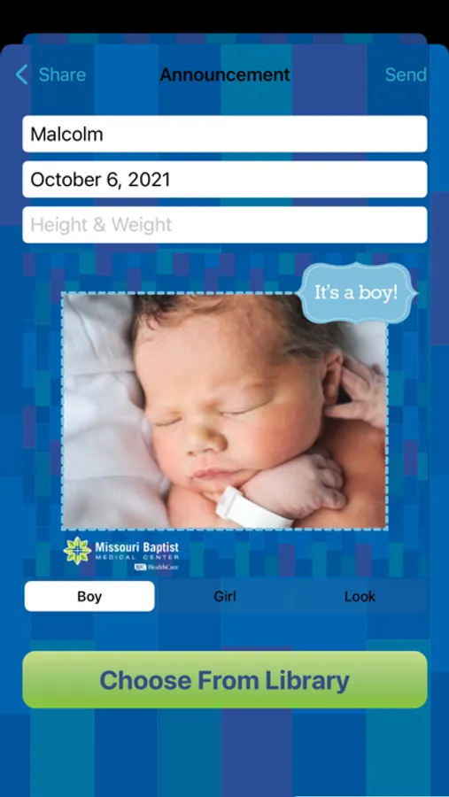 4. Celebrate your baby’s arrival with an electronic birth announcement, customized to include your baby’s name, photo, birthdate, height and weight. You can send the adorable announcement to family and friends via email, text message, Twitter and/or Facebook.