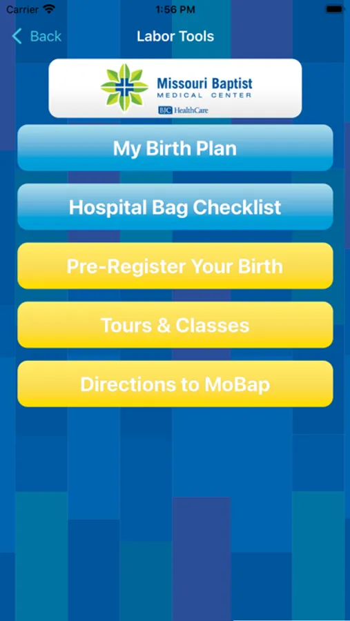 3. Decide which items to bring to the hospital for labor, postpartum and baby with our hospital bag checklist. You also can use the app to pre-register for your delivery, research tours and classes available at MoBap, and retrieve directions to the hospital.