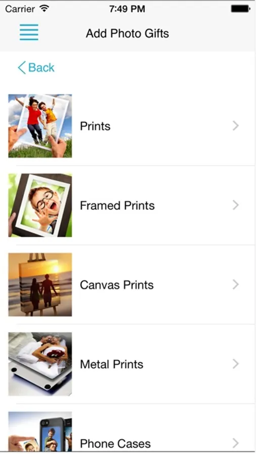 - Premium metal prints (5x5, 5x7, 8x8, 8x10, 10x10, 12x12)
