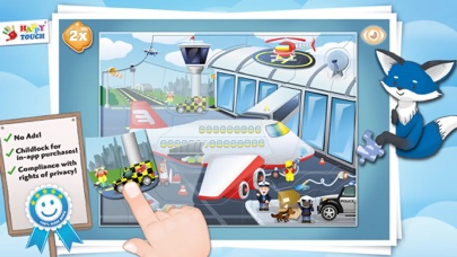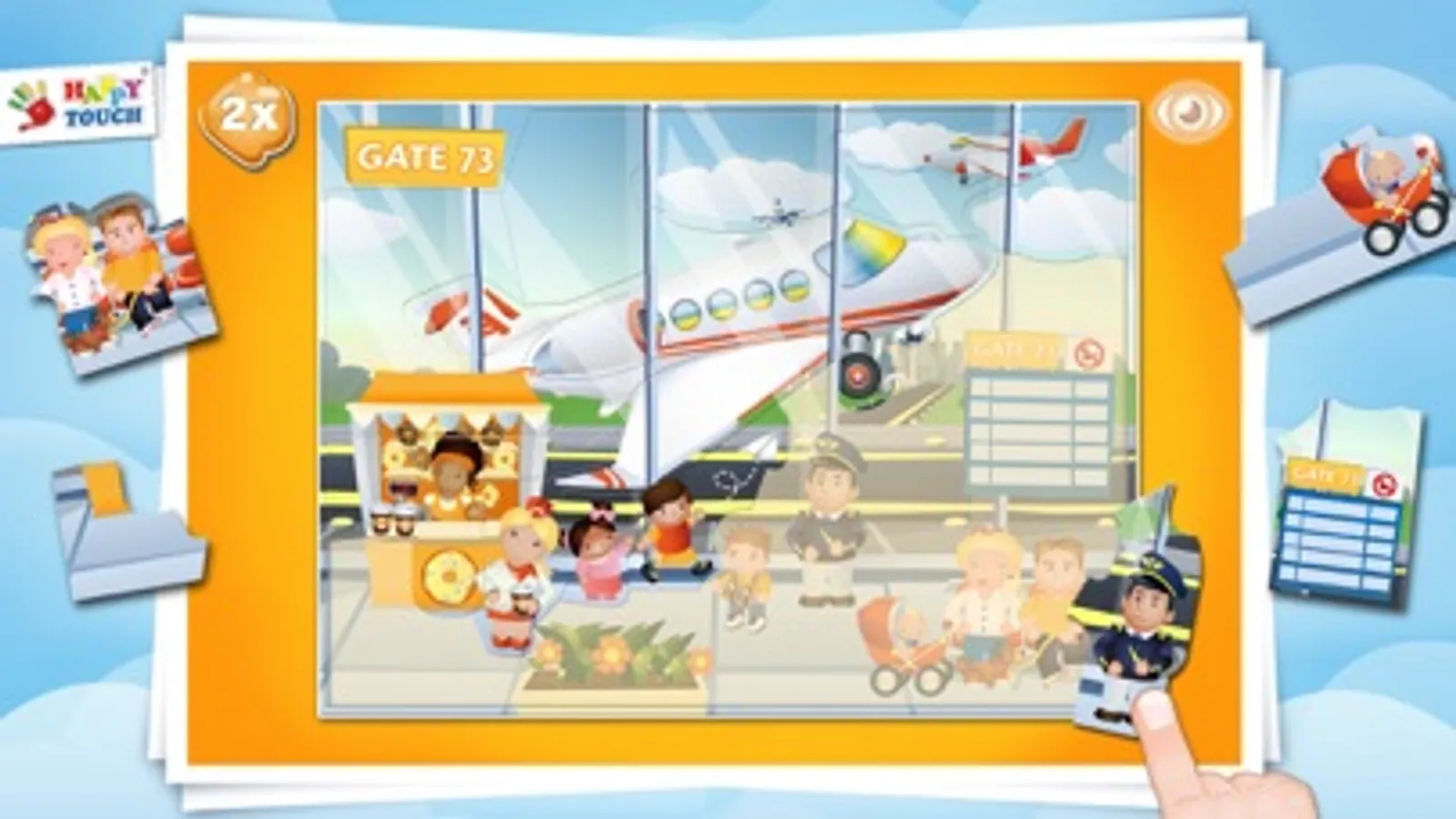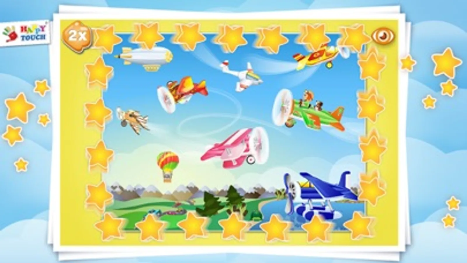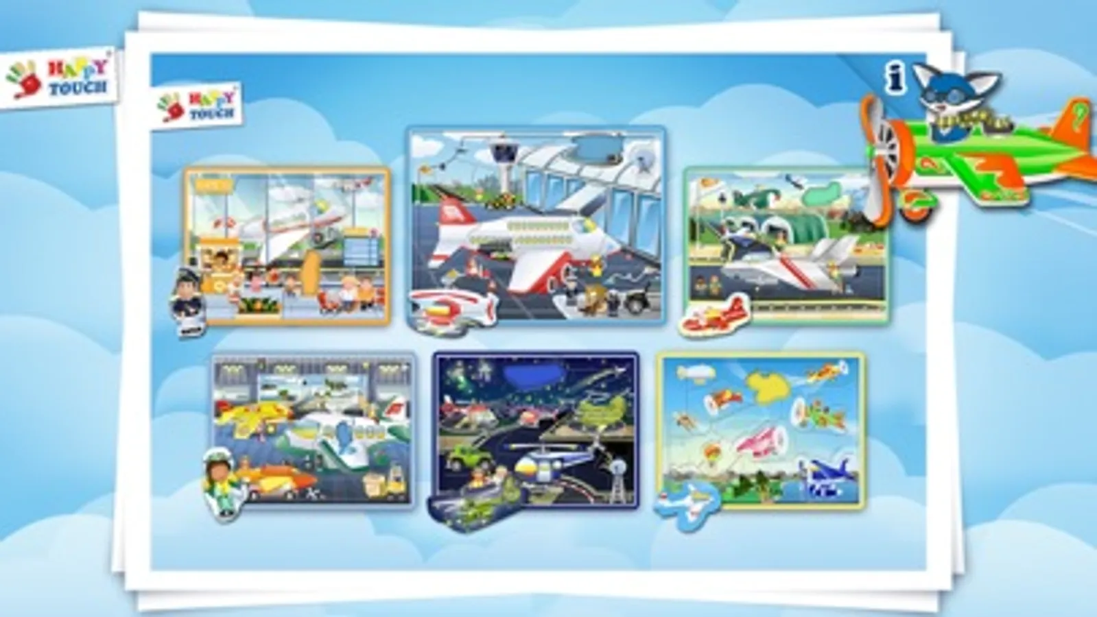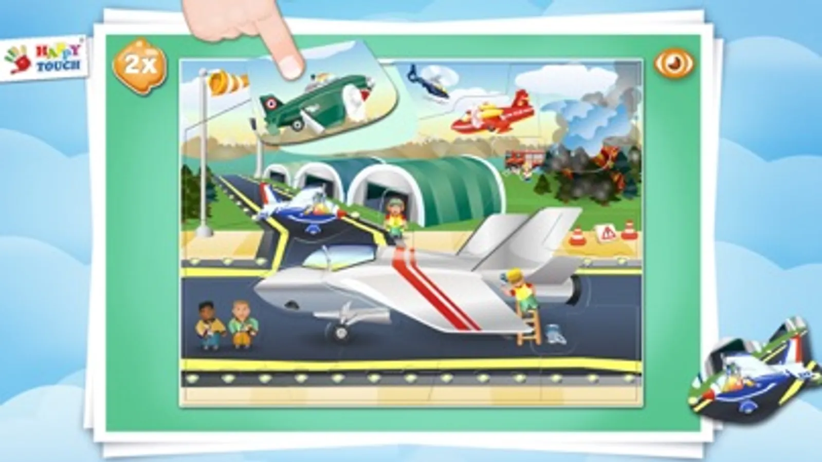 Discover the large aircraft paradise! You will discover a lot! See the plane taking off. Do you see the forest fire? The rescue helicopter quickly come to the rescue. Look into the aircraft's workshop and discover the hot air balloon. And there's an unidentified flying object. Can you find it?