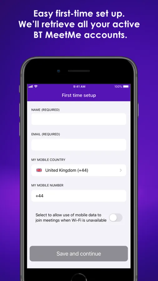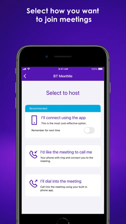 • Save your chairperson BT MeetMe account details so you can just tap to start a meeting