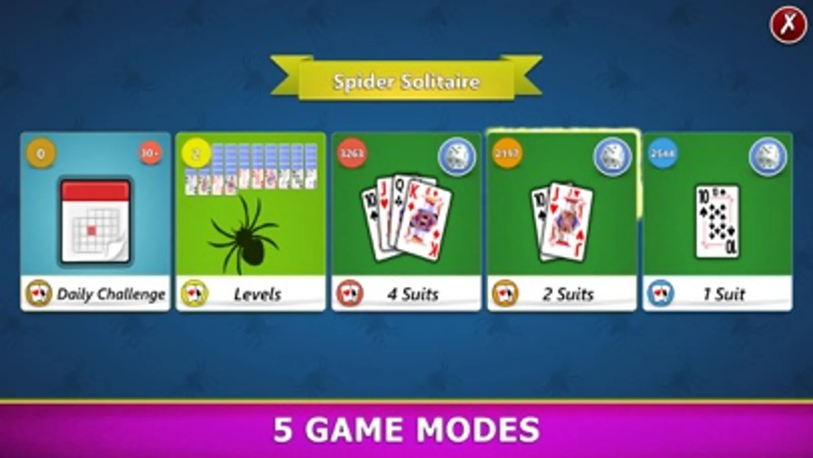 Spider Solitaire games that you can win deliver the best experience. As you may know, most Spider Solitaire games are not winnable even though you play your best. That's where we come in. We included in this game only winnable deals for all types of games: with one suit, with 2 suits and 4 suits. Thus you can be sure that you will win if you play perfectly. Now you can truly enjoy the game.