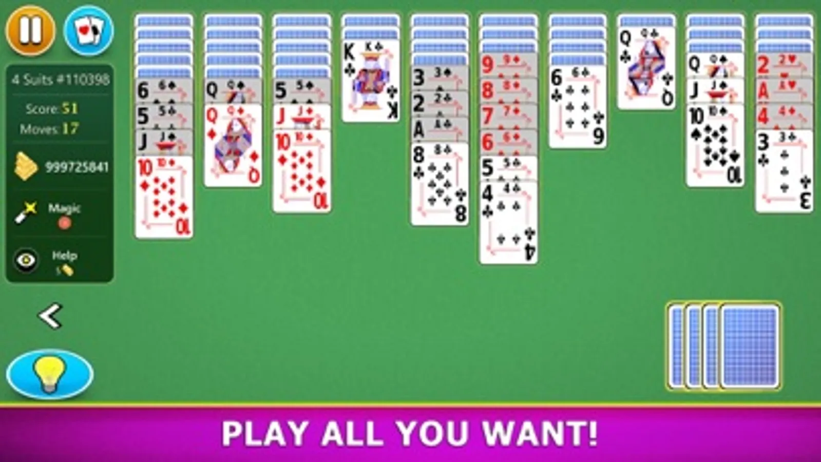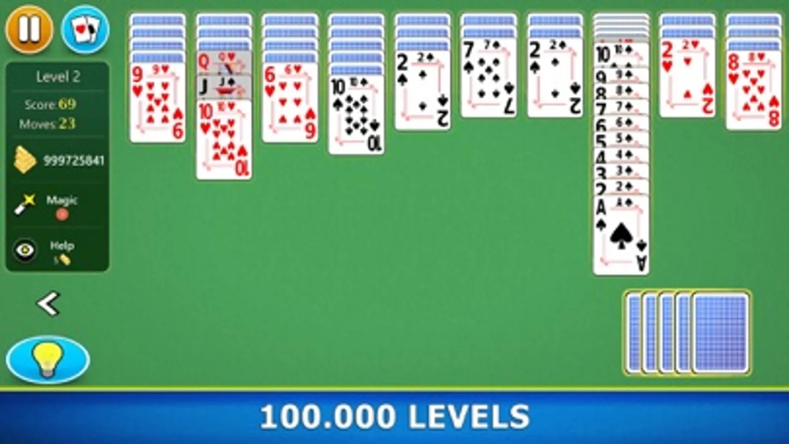 - Level Mode with 100,000 levels of 1 suit, 2 suits and 4 suits deals