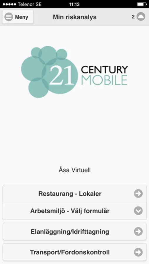 Du behöver ett konto hos 21st Century Mobile för att använda Riskanalys. Skapa testkonto här: https://riskanalys.21st.se/test/