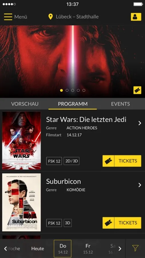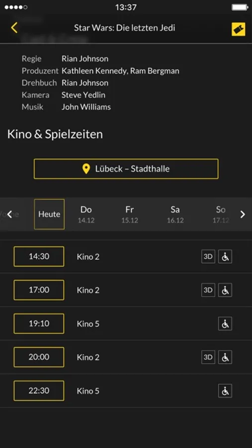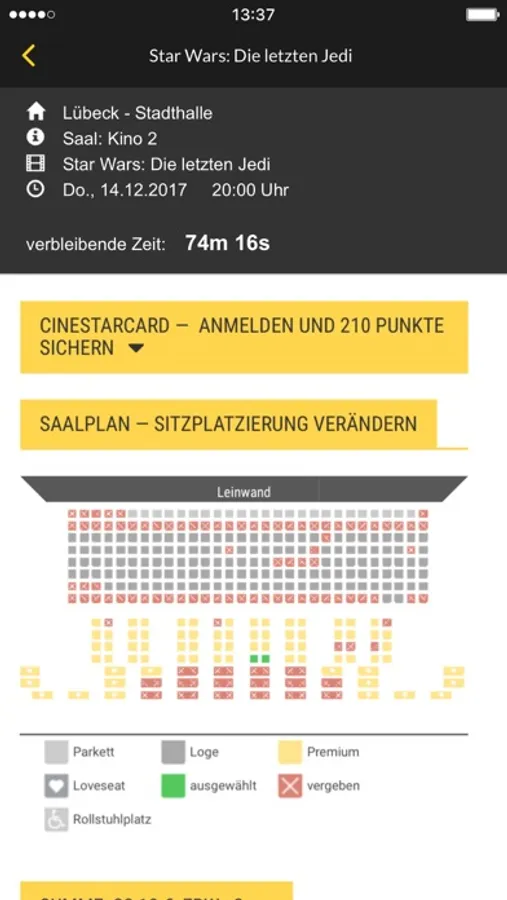 • Kinos: alle CineStar-Kinos Deutschlands auswählbar