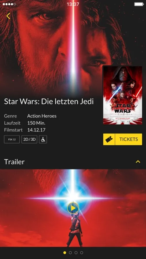 Entdecke in unserer App das komplette Kinoangebot inklusive Online-Shop und CineStarCARD-Bereich. Passe die App genau deinen Bedürfnissen an. Viele intelligente Filter machen es dir leicht, genauso wie die intuitive Navigation und die Möglichkeit, schnell weiterzuswipen.